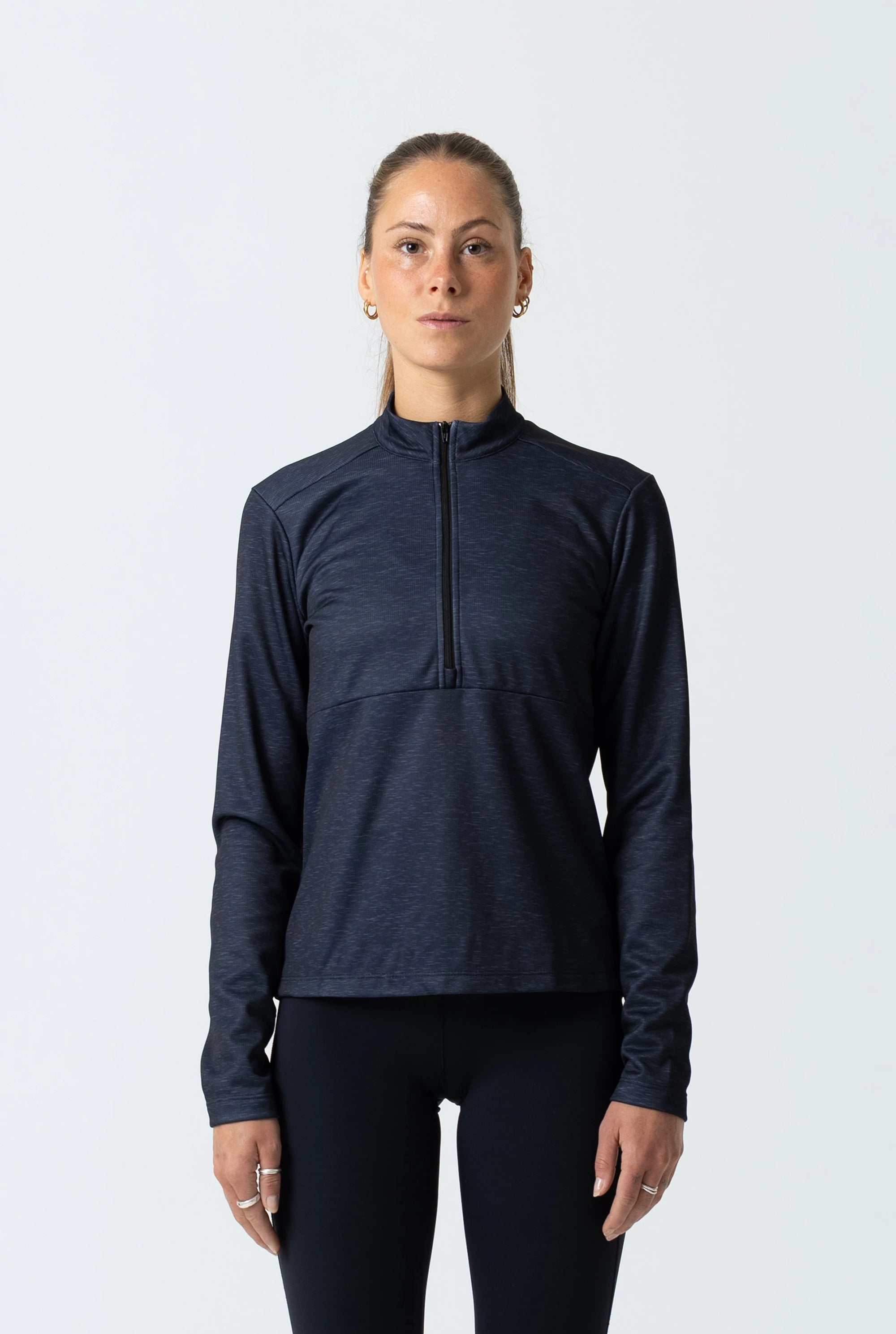 A woman wearing a charcoal cycling jacket with full length YKK zipper, designed for gravel road riding. The jacket features a windproof fabric, under helmet hood, reflective trims, and an elasticated hem.